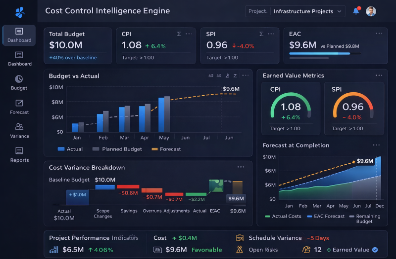 This toolkit brings together advanced analytics, forecasting engines, executive dashboards, and AI-powered decision tools into one integrated project controls platform.